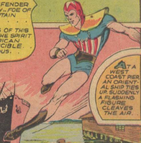 Captain Freedom. Newspaper publisher Don Wright puts on a costume in order to help the downtrodden and oppressed, but soon finds that the Axis and its agents are a bigger problem. He is helped by the Young Defenders, four children named Lefty, Slim, Whitey (later Beanie) and Joanie. Captain Freedom has low-level super-strength, limited invulnerability, and can fly. In Speed Comics #23 he is part of a one-time super-team: Shock Gibson, Ted Parrish, Pat Parker, Girl Commandos, Captain Freedom, Dick Lane, and the Black Cat. He fights ordinary criminals, saboteurs, German and Japanese spies, Yellow Peril Mad Scientists like Chang Ku (and his zombies), and the Black Dragon Society, among others. He appears in stories with titles like “The Destructive Construction Company,” “The Undersea Terror,” and “The Star Spangled Wreckers.”