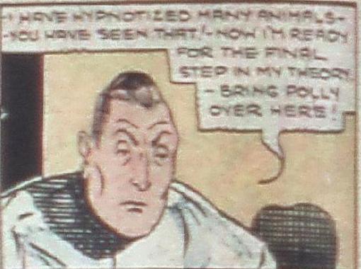 Hypno, Dr. "Dr. Hypno! Brain specialist, psychologist, and former federal investigator!! A name that commands the respect of a nation and the fear of its criminals!" Aided by his Chinese assistant “Wun,” Hypno fights against crime. For short periods of time he is able to project his personality into the bodies of animals, like his pet parrot Polly and a bloodhound, to fight against racketeers and other vile men.