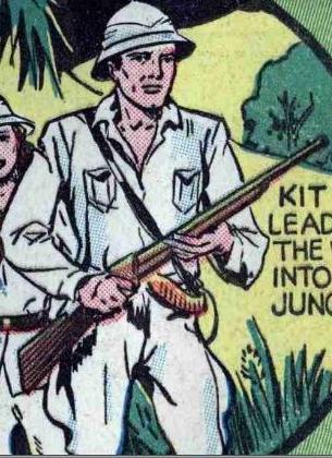 Kelly, Kit. Kit Kelly is a big game hunter in west Africa. He is hired by director John Abbott to accompany Abbott, a film crew, and the beautiful actress Joan Sarret to film an African uprising. The uprising, led by Dawambo, “son of a king, an Oxford graduate,” consists of every African people, including “fierce Riffians...Ethiopian hordes...cannibals...pygmies...Zulus....” In the small country of Wakuna, Dawambo’s forces temporarily overwhelm the film crew and capture Joan, but Kit attacks and knocks out Dawambo, and the film crew frightens the rebels away by projecting a film on to a wall. (None of the Africans have ever seen a movie, apparently).