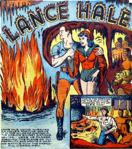 Hale, Lance. Lance Hale is a Great White Hunter type who adventures in Africa, finds the world's richest diamond in the "wilds of Rhodesia," and "passes through the Flame of Immortality." He also helps Daredevil to fight against Hitler "and his jungle hordes" on one occasion, and assists Captain Battle on another. He appears in stories with titles like “Invasion of the Spirit Men,” “Jungle Spaceship,” and “The Forbidden Valley of Ka-Zor.”