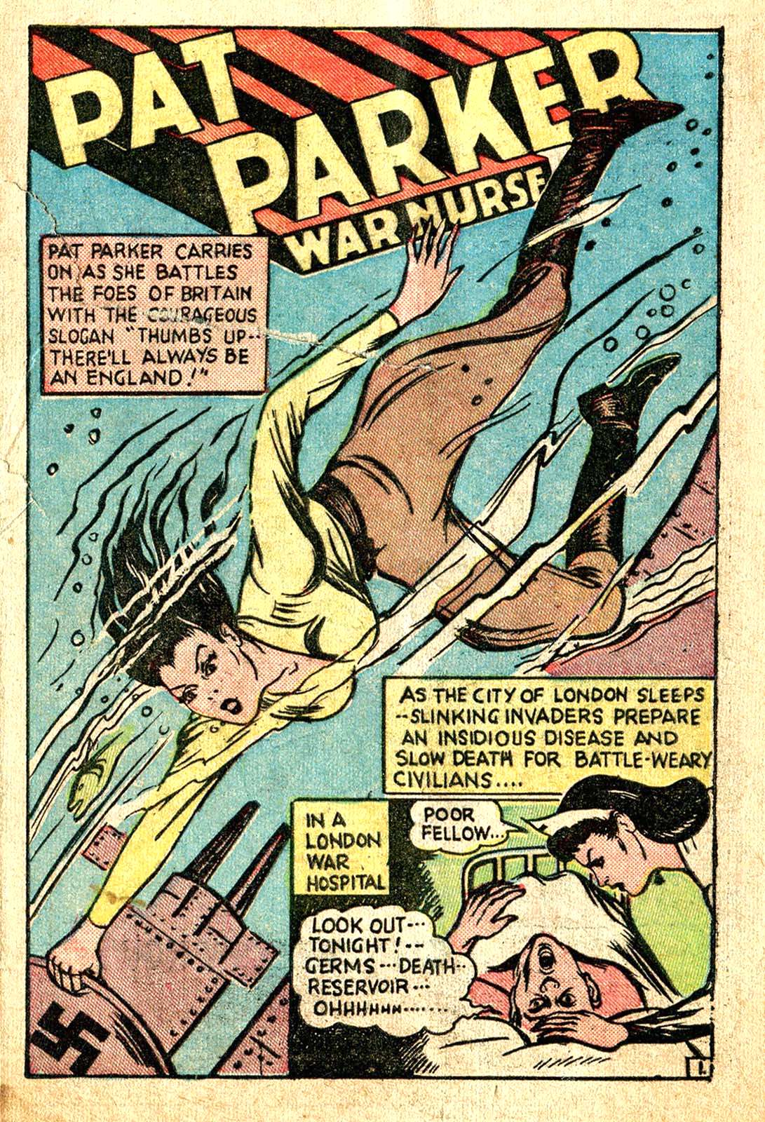War Nurse. Pat Parker, a nurse in England during the War, is infuriated with the Axis and decides to take more action against them than just healing the wounded. She wages a guerrilla war against them. She is assisted by the Girl Commandos. In Speed Comics #23 he is part of a one-time super-team: Shock Gibson, Ted Parrish, Pat Parker, Girl Commandos, Captain Freedom, Dick Lane, and the Black Cat. She has no powers.