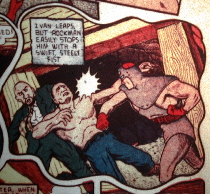 Rockman. Rockman is the king of the underground kingdom of Abysmia, “a strange, unknown, subterranean world deep in the earth’s ancient, gas-formed caverns.” The Abysmians are the descendants of the first white inhabitants of the American continent. Rockman has been monitoring events aboveground for some time and he finally loses his patience when “one of the human rats” tries to “undermine the peace and security of that great nation above us.” Rockman leaves for the surface to help America against its enemies. He has access to advanced science, including monitoring equipment and a "digger car." He has exceptional speed and fighting ability, has a super-tough body, limited super-strength, does not need oxygen to breath and is immune to the pressures of the sea-depths.