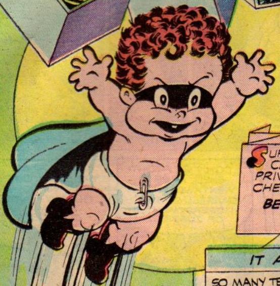 Super Baby (II). "Superwomen, wondermen...captains, colonels, then again, privates, looies, corporals too. Cheer out loud...and so will you--because Super Baby has Super Do!!" Super Baby (II) is a crime-fighting toddler with the Superman suite of powers.