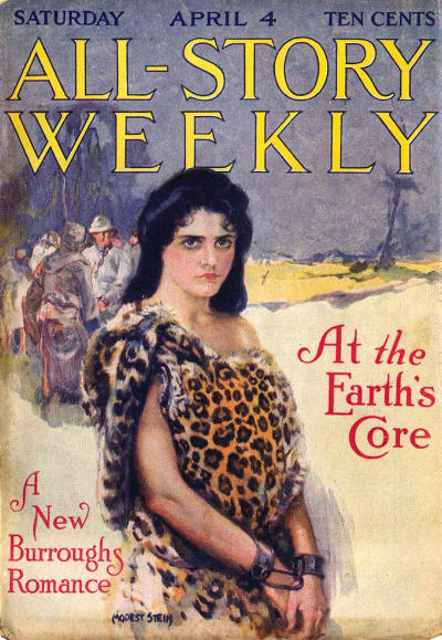 Brave American miner David Innes and his inventor friend Abner Perry descend into the depths of the Earth in Perry’s “Iron Mole,” a giant cylindrical drilling machine. The Iron Mole drills through 250 miles of Earth and breaks through into the subterranean world of Pellucidar, which is perpetually in daylight and is inhabited by dinosaurs, cavemen, and other strange flora and fauna. Innes and Perry have a variety of adventures there, from violent encounters with the Sagoth gorilla-men to war with reptile-men. In Tarzan at the Earth’s Core (1930) Innes meets Tarzan (I).