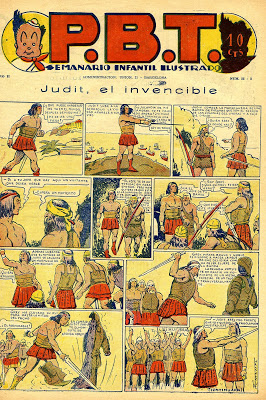 Judit. Judit was created by the Spanish creator José Canellas Casals (Amiel, Armando, Jaime Bazán, Black (III), Carlos and Marcos Bon, Bronkos, Cesar, Thalma Klan, Mario, Nick, Red Circle, Rin-Tin-Tin (I), Sam, Sankro, Spaceman (II), Titán (II), Toby, Capitán Velez, Mack Wan, Fernando Zabal, Zimbra, Khun Zivan) and Alberto Mestres (Thalma Klan, Little Legionnaire) and appeared in the comic strip “Judit, el Invencible” (P.B.T., 1934-1937?).