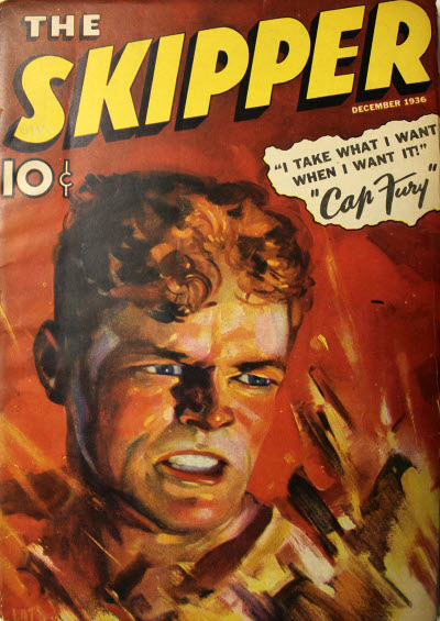 Captain John Fury is the Skipper, the pilot of the Whirlwind, a tanker converted into an armed cruiser, armor-plated and packed to the gills with guns, torpedoes, and mines. Before World War One the Whirlwind was the scourge of pirates and all oceanic wrongdoers. During World War One the Whirlwind devastates the German fleet. Fury is a merciless scourge of criminals. He is brutal when he needs or wants to be and even engages in torture if the ends, for him, are justified. Fury is assisted by first mate “Marlin Spike” Briggs, second mate, “Hurricane” Dan Belmont, "Grump" Rollins, and a friend, Peter Doom.